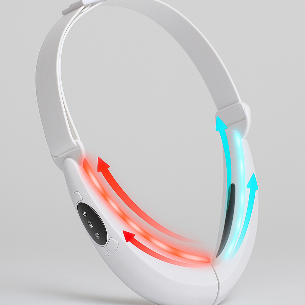Unser Gesichtslifting-Gürtel ist speziell dafür konzipiert, die Schlüsselbereiche des Gesichts wie Wangen, Kinn und Kiefer zu behandeln. Er verwendet flexible und bequeme Materialien, die sich perfekt an die Konturen des Gesichts anpassen und so einen komfortablen und sicheren Sitz während der Anwendung gewährleisten.